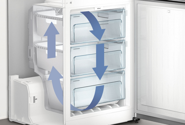 Холодильники, которые не требуют разморозки, это холодильники с системой No Frost. Принцип работы системы No Frost таков — в морозильном отделении за декоративной панелью находится испаритель из изогнутых трубок, на которых установлены ламели с электронными датчиками, тэном подогрева и вентилятором. В процессе работы компрессора, испаритель...